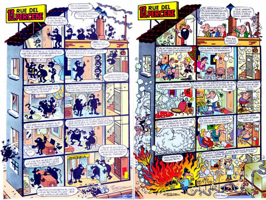 Era el año 1961 cuando la mítica revista Tío Vivo publicaba por primera vez la serie de historietas ideada por el genio de Francisco Ibáñez bajo el título 13, Rue del Percebe. En ella se muestra la fachada abierta de un edificio y en su interior toda suerte de personajes. Habitualmente los mismos, igual que sus problemas, cuitas y trifulcas que se sucedían entre una buhardilla, la azotea o la tienda de ultramarinos. Ya decimos, siempre las mismas peleas y poca o ninguna solución.
