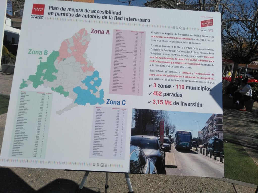 La Comunidad de Madrid ha presentado las líneas maestras del Programa de Mejora de Accesibilidad en paradas de autobuses interurbanos dirigido a los municipios que cuentan con menos de 20.000 habitantes, como Humanes o El Álamo, donde se ha presentado este plan.