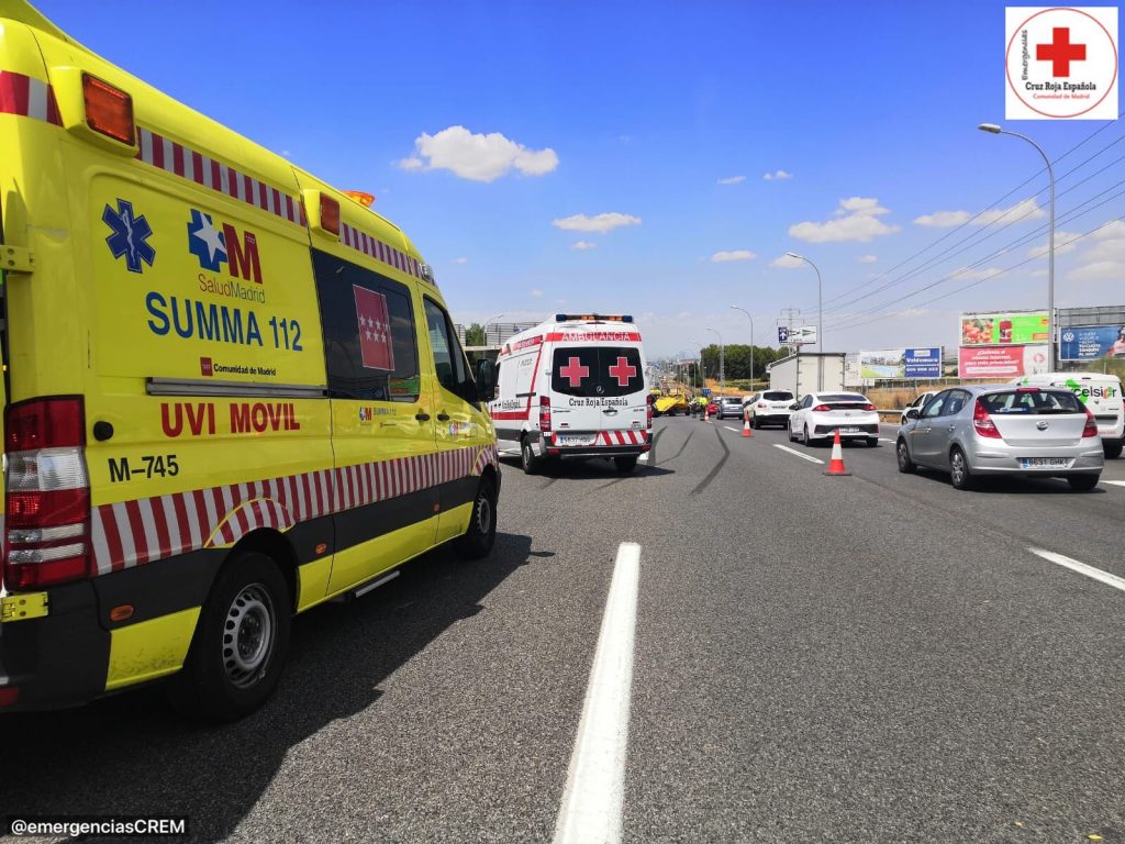 Efectivos de Cruz Roja Comunidad de Madrid, alertados por el SUMMA 112, han participado en labores de emergencia en una accidente de tráfico múltiple y con heridos, en la A-4 a su paso por el término municipal de Pinto.