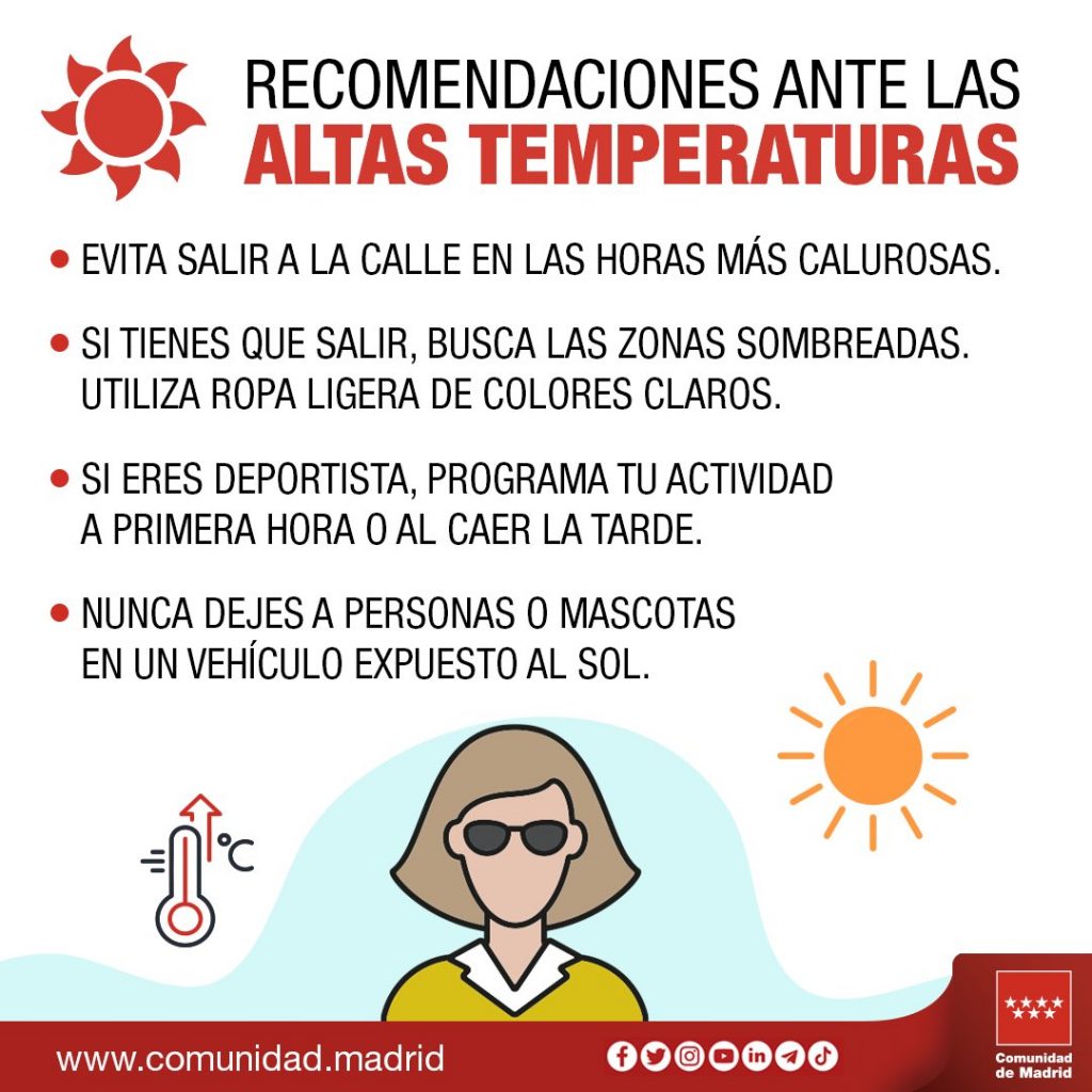 Por todo ello, la Comunidad de Madrid tiene activado el nivel 2 de alerta en la región, ofreciendo recomendaciones y consejos, sobre todo a la población vulnerable, para evitar el impacto del calor en la salud.