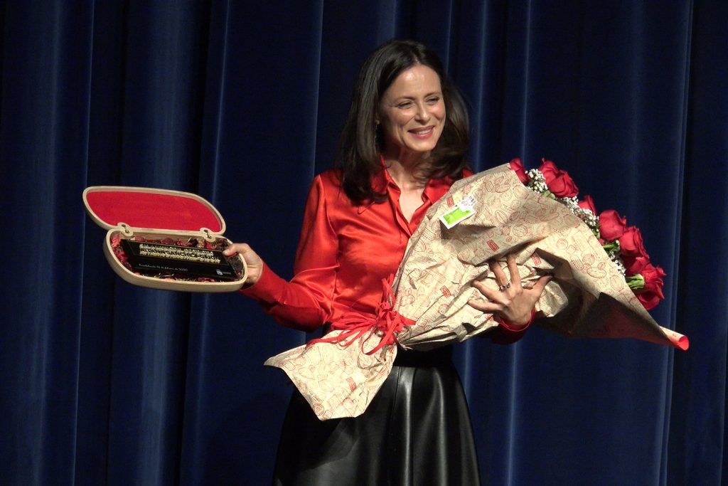 Aitana Sánchez Gijón ha recorrido el centro y ha recibido una estatuilla y un ramo de flores. A petición de la actriz, la compositora Joana Gomila ha interpretado al contrabajo varios temas, poniendo la nota musical al acto.