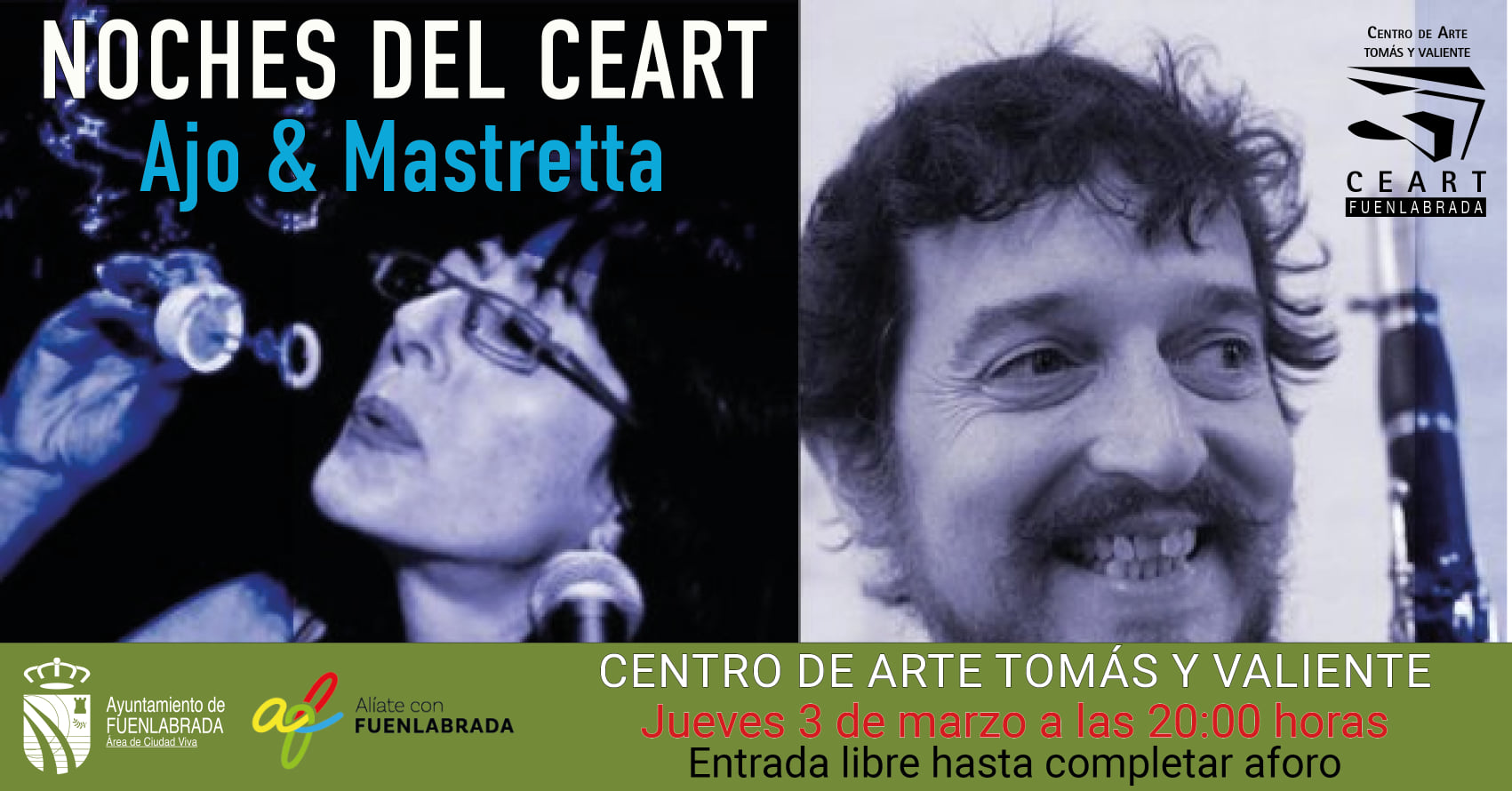 Las noches del CEART en Fuenlabrada proponen una fusión de música y teatro para este jueves, 3 de marzo, de la mano de Ajo & Mastretta.