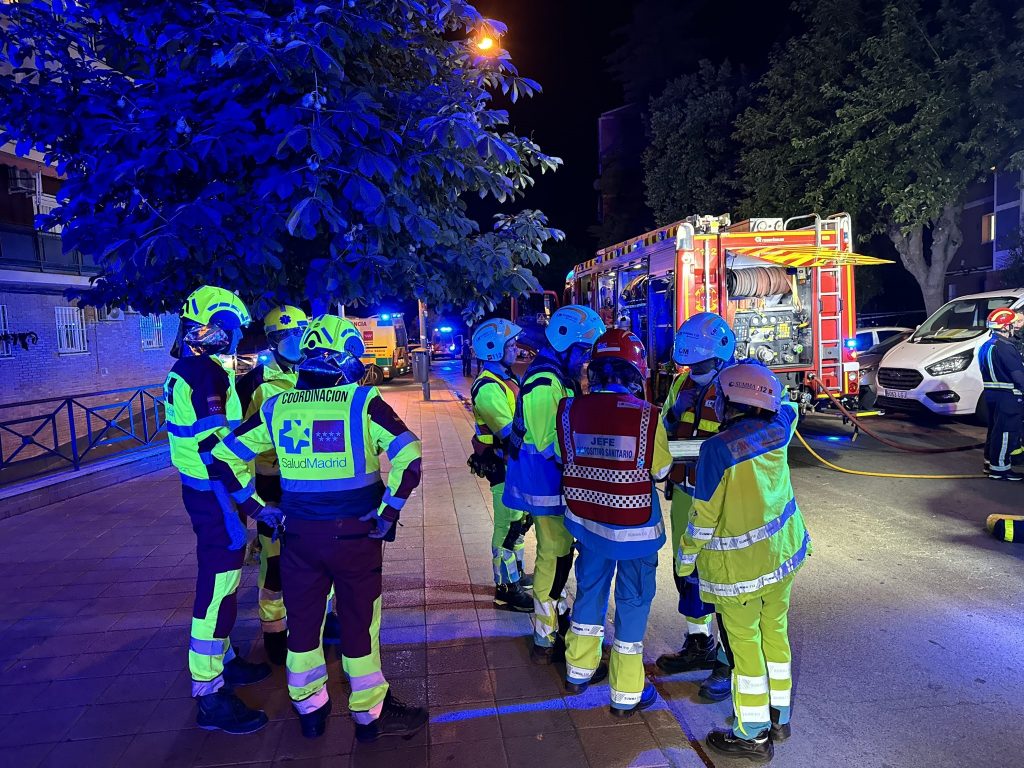 Siete dotaciones de Bomberos de la Comunidad de Madrid controlaron y extinguieron el fuego, y posteriormente revisaron cada piso para cerciorarse de que la concentración de monóxido de carbono era nula.
