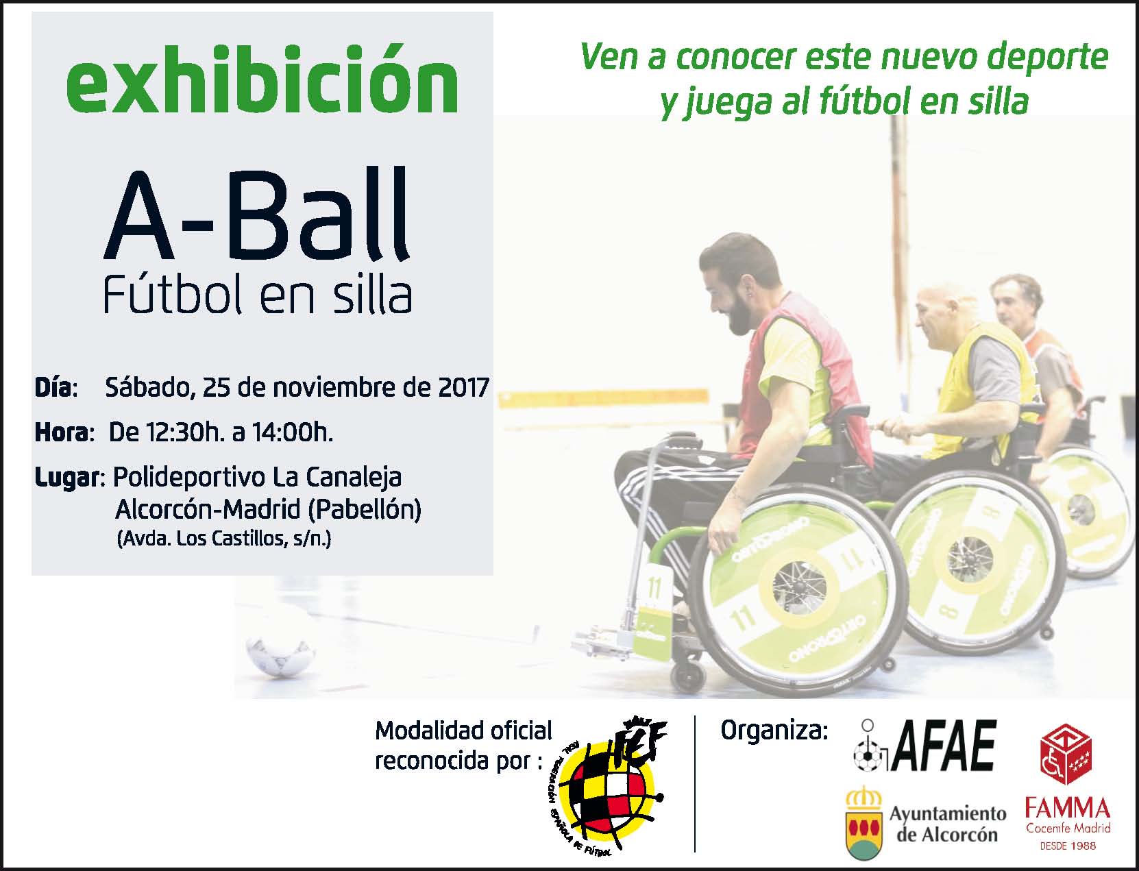 El polideportivo de La Canaleja acogerá este sábado (de 12.30 a 14.00 horas) una exhibición de A-Ball, fútbol en silla de ruedas, una nueva categoría deportiva internacional que aspira a convertirse en disciplina paralímpica.