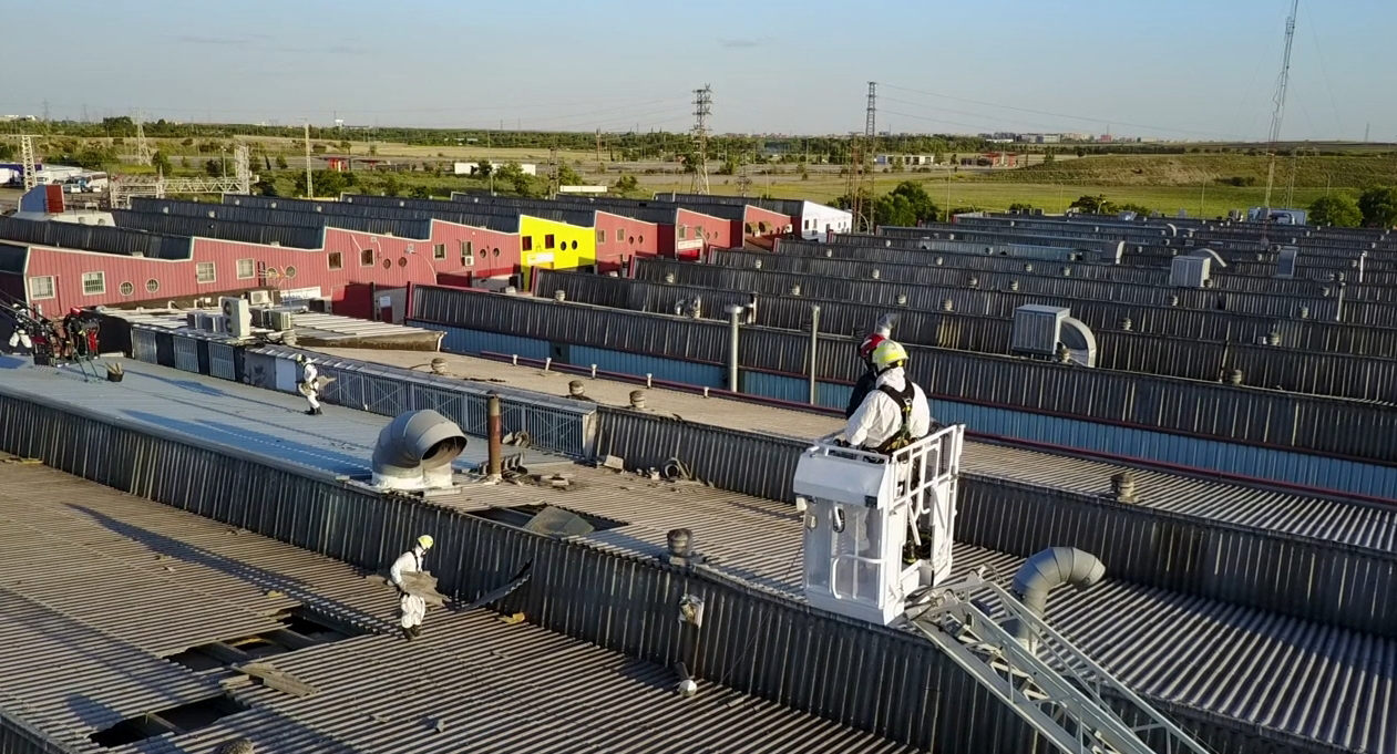 Inmediatamente, varias dotaciones del Cuerpo de Bomberos de Alcorcón, entre ellas dos vehículos autoescala, llegaban a la zona para evaluar los daños. Las actuaciones consistieron en retirar las cubiertas dañadas y asegurar las estructuras que pudieran estar afectadas para minimizar los riesgos.