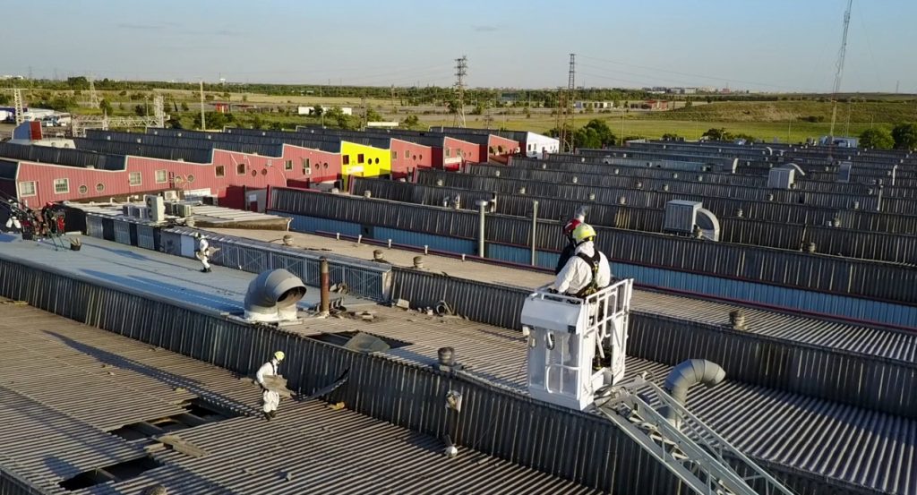 (ALCORCÓN) Daños en las cubiertas de varias naves de Urtinsa por un tornado de 70 metros de altura