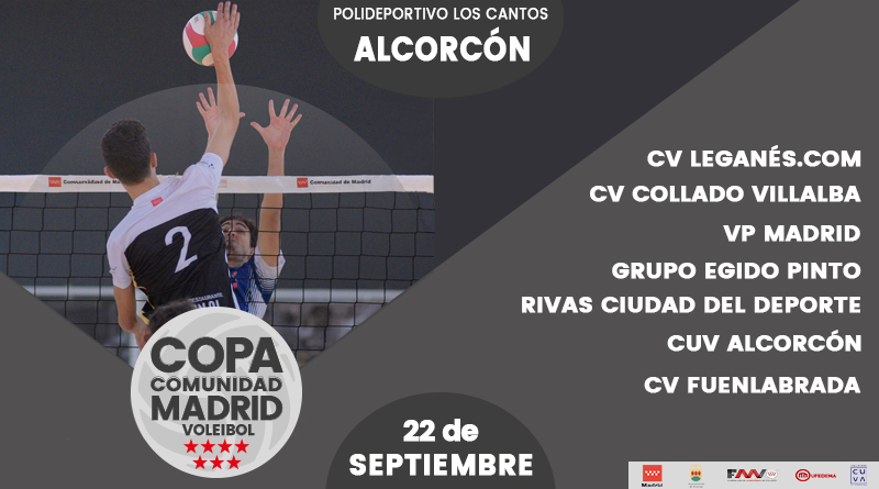 El polideportivo Los Cantos de Alcorcón será escenario este domingo día 22 de la Copa Comunidad de Madrid de voleibol masculino, primer torneo oficial de la temporada y en el que se darán cita siete equipos, entre ellos el CUV Alcorcón que ejercerá como anfitrión. El ganador de la pasada edición, CVLeganes.com, vuelve a partir como principal candidato al triunfo final.