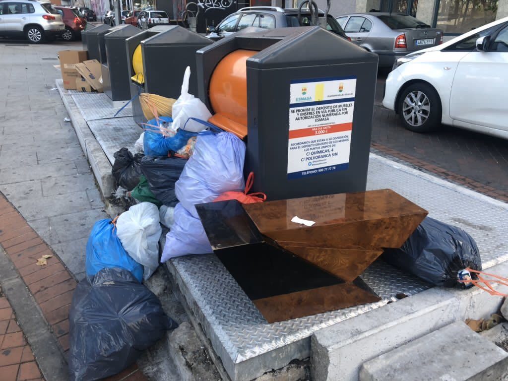 Bolsas de basura, muebles viejos, electrodomésticos y colchones vuelven a rebosar las islas ecológicas de Alcorcón. Y, en algunos casos, hasta las aceras.