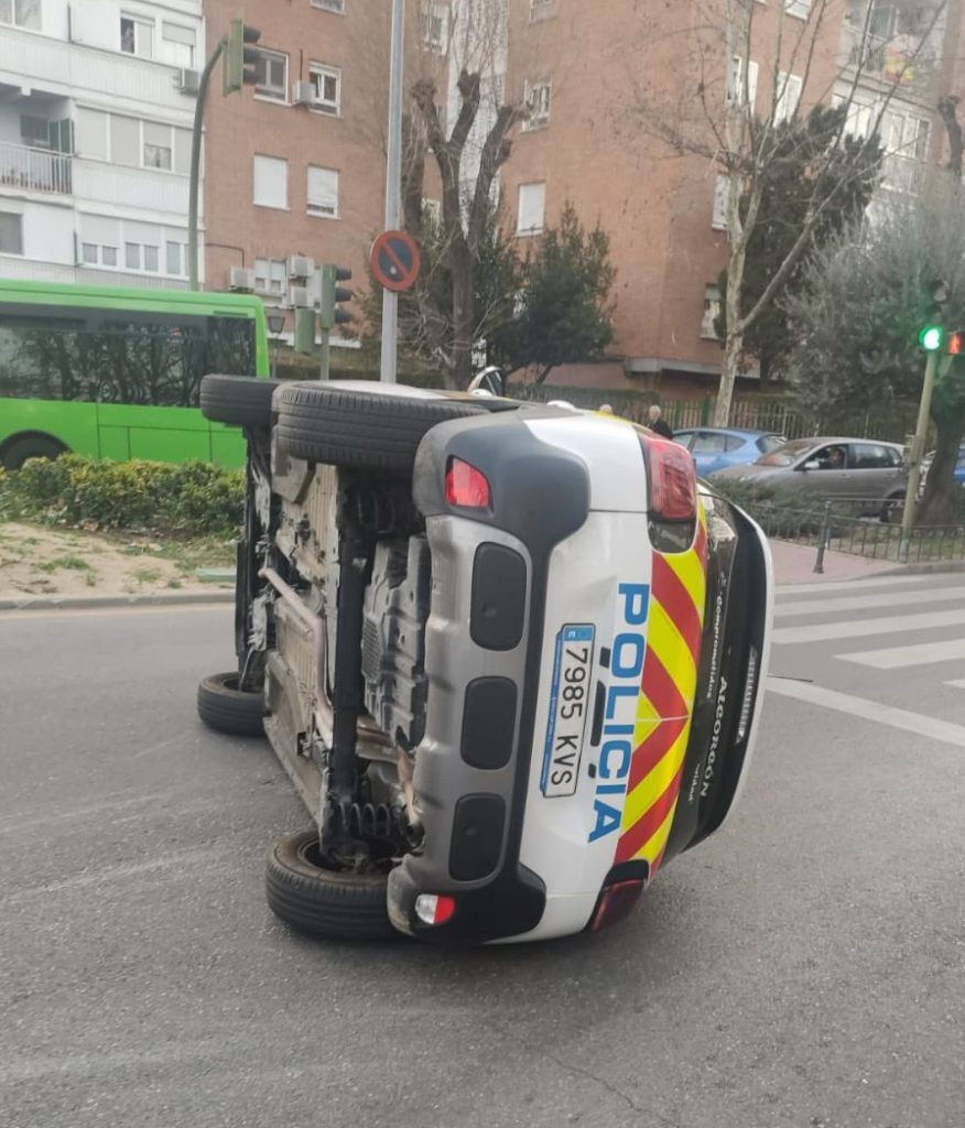 En la operación policial, un vehículo patrulla sufrió un aparatoso vuelco en la confluencia de las calles Polvoranca con Alcalde José Aranda, donde afortunadamente ninguno de los policías resultó herido, tal y como informó el propio Cuerpo.