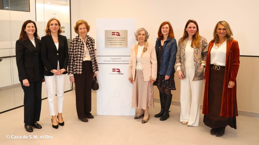 S.M. la Reina Doña Sofía ha inaugurado este 19 de febrero en Alcorcón, el centro de diálisis Los Llanos III de la Fundación Renal, acompañada de la presidenta de la Fundación, Isabel Entero, la Subsecretaria del Ministerio de Sanidad, Ana María Sánchez Hernández, la Comisionada del PERTE para la Salud de Vanguardia, Raquel Yotti, y la alcaldesa de la localidad, Candelaria Testa. Al evento han acudido también los presidentes de la Sociedad Española de Nefrología, Emilio Sánchez, de la Sociedad Española de Enfermería Nefrológica, Itziar Bueno, la presidenta de ALCER Madrid, Iluminada Martínez y representantes de atención primaria y de los hospitales de referencia.