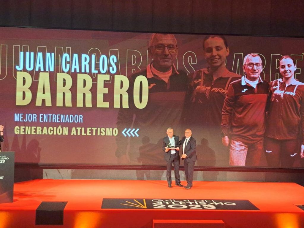 Juan Carlos Barrero, entrenador y presidente del Club Atletismo Alcorcón, recibió el Premio Mejor entrenador Generación Atletismo 2023 que concede la Real Federación Española de Atletismo (RFEA) en el transcurso de la Gala del Deporte 2023 celebrada el pasado sábado en el Auditorio Goyeneche del Consejo Superior de Deportes, en Madrid.
