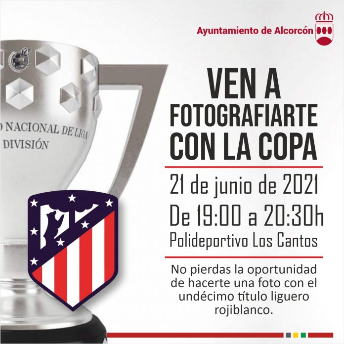 Los aficionados del Atlético de Madrid podrán disfrutar el próximo lunes día 21 del trofeo de campeón de la Liga 2020/21 en Alcorcón y tendrán incluso ocasión realizarse una fotografía junto a la Copa, ya que visitará la ciudad gracias a una iniciativa de la Peña Atlética 2000.