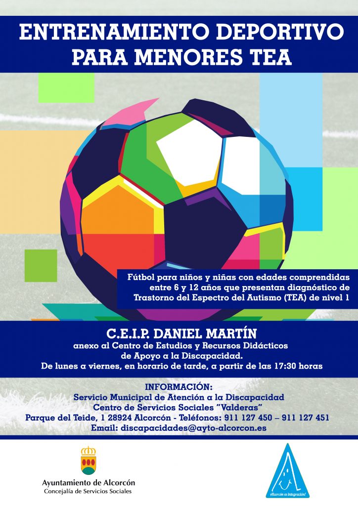 El Ayuntamiento de Alcorcón y la Universidad Rey Juan Carlos, a través del Centro de Estudios y Recursos Didácticos de Apoyo a la Discapacidad, han puesto en marcha un nuevo proyecto de fútbol dirigido a niños y niñas con edades comprendidas entre 6 y 12 años y que presenten diagnóstico de Trastorno del Espectro del Autismo (TEA) de nivel 1.