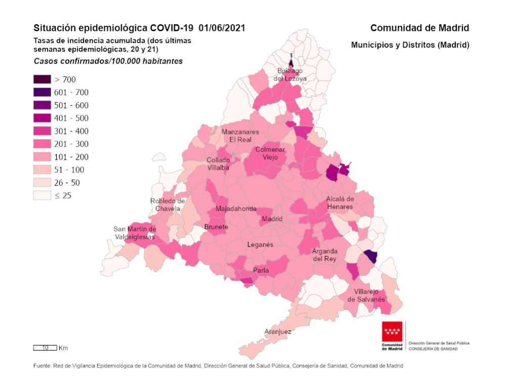 La Comunidad de Madrid ha actualizado este martes, 1 de junio, el balance epidemiológico sobre la incidencia acumulada (IA) de coronavirus en la región a 14 días. Y en lo que respecta a los principales núcleos de población del sur de Madrid, la tendencia sigue siendo descendente.