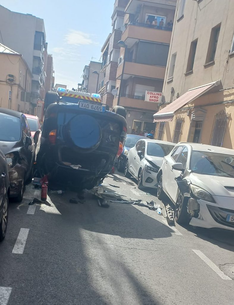Nuevamente emprendió la marcha y se coló por la peatonal de la calle Madrid, atravesando el tramo que va hacia General Castaños, subiendo la calle en dirección contraria hasta el cruce con Álvaro de Bazán. En el trayecto fue golpeando a varios turismos estacionados hasta que, finalmente, chocó contra un coche, que provocó el espectacular vuelco del vehículo en cuestión.