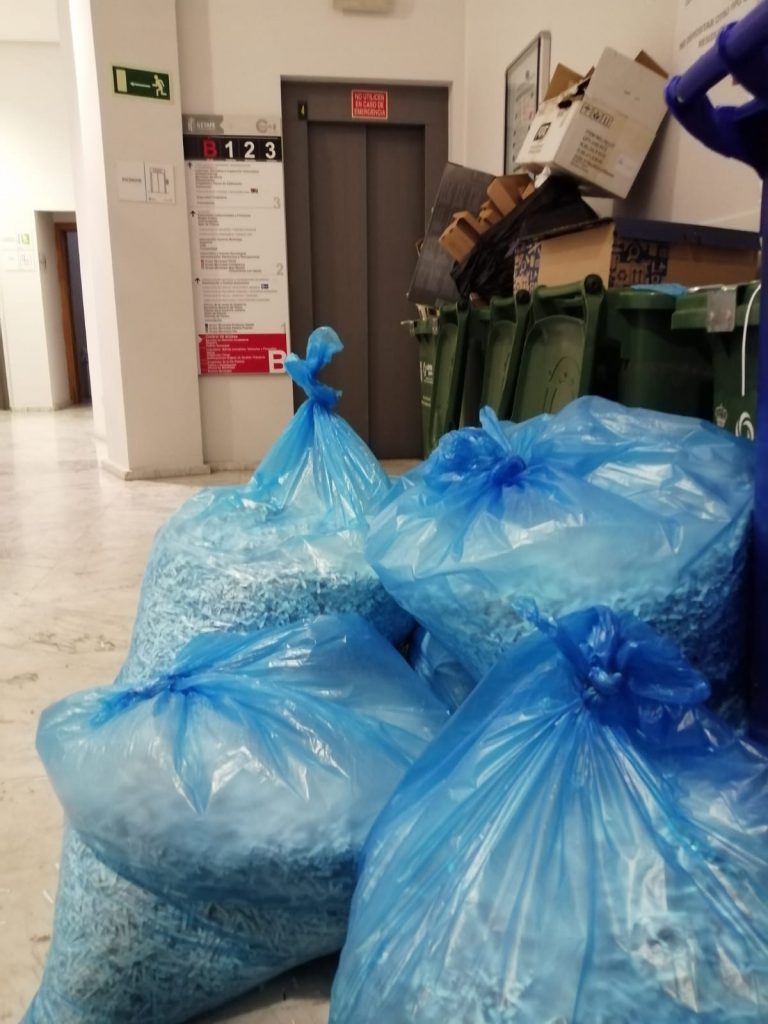 ¿Cambio en Getafe? Al menos de documentos parece que sí, pues en la mañana de este viernes, 26 de mayo, han aparecido enormes bolsas de basuras, con papeles triturados, en una zona de contenedores del Ayuntamiento de Getafe.