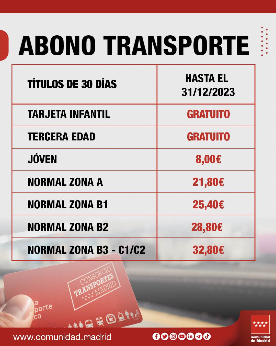 Ambas medidas, que ya se aplican desde el pasado 1 de febrero, permitirán a cerca de siete millones de usuarios madrileños seguir beneficiándose de este descuento, que supone un ahorro global de 30 millones de euros al mes.