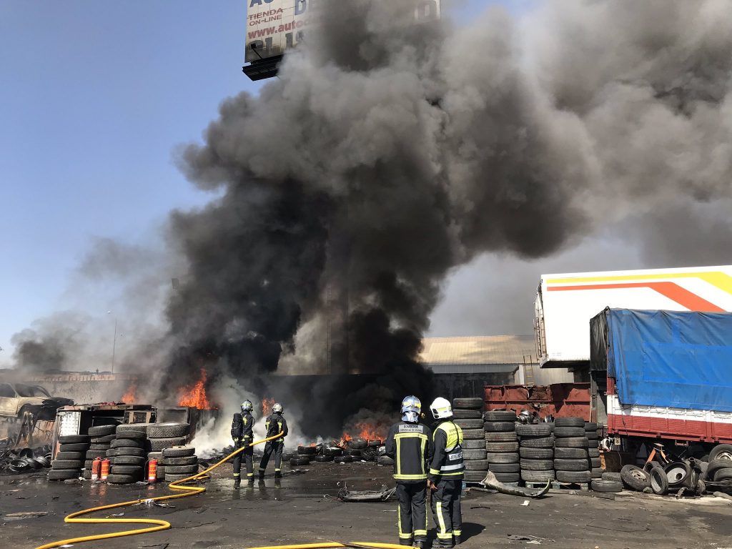 El 112 ha recibido la primera llamada a las 11.20 horas donde se alertaba de un incendio, por lo que una dotación de cuatro bomberos de Leganés, en colaboración con tres bomberos más de la Comunidad de Madrid y otros tres del Ayuntamiento de Madrid han acudido a la zona donde ardían 500 metros cuadrados con neumáticos y vehículos. Se ha producido una humareda «importante», aunque ya han conseguido disiparla.