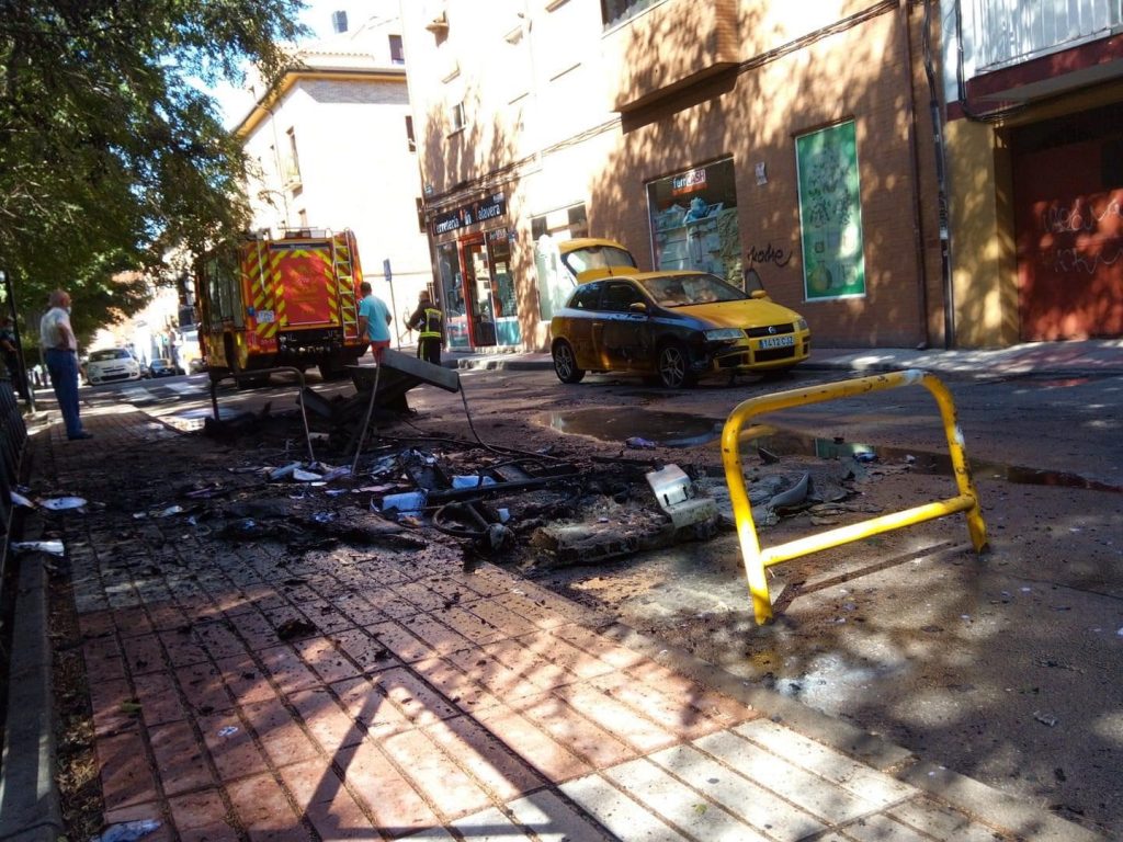 Varios contenedores de la calle Polvoranca de Humanes de Madrid, ardían este martes, 4 de agosto, por causas que se desconocen. Los contenedores han quedado totalmente calcinados, pese a la intervención de los bomberos, que han tenido que sofocar las llamas.
