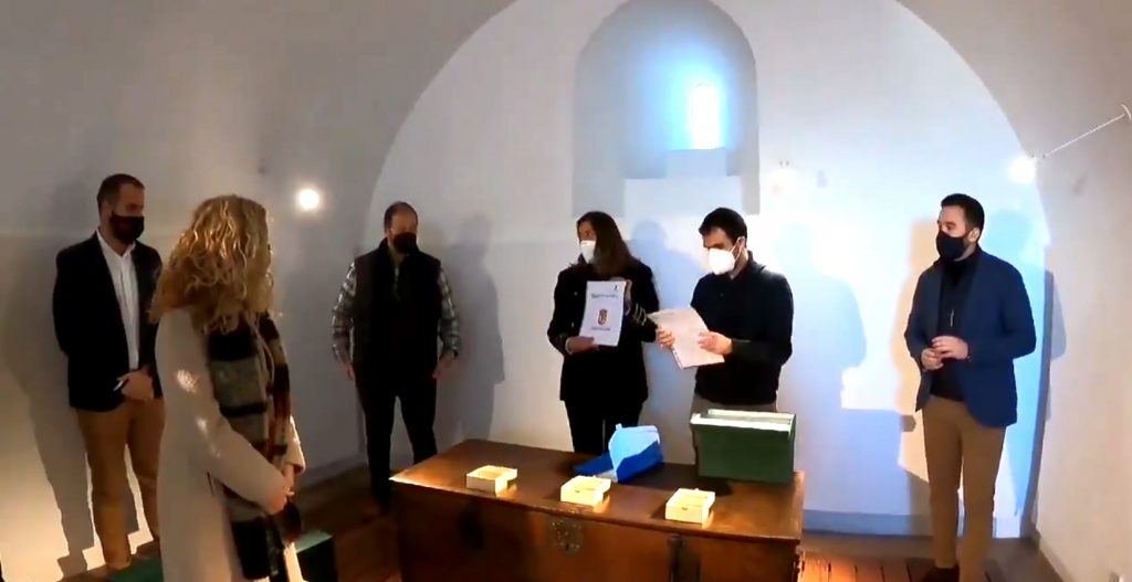La cápsula del tiempo de Arroyomolinos ha quedado cerrada con las tres llaves que guardan desde hoy, en un cofre de madera, 1.500 objetos entre mensajes, fotografías, etc… de peñas, escolares, vecinos, asociaciones y de la representación institucional del municipio sobre las vivencias de este año 2020 marcado por la pandemia, y no se abrirá hasta 2055.