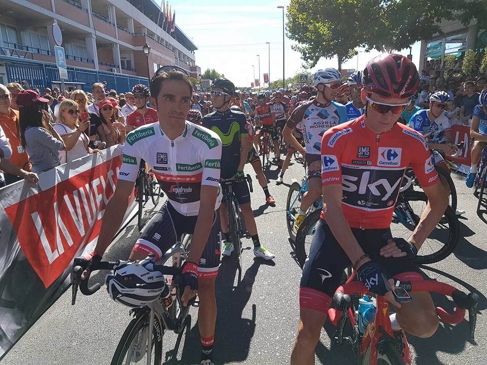 Como es lógico, los primeros clasificados de la general (Froome, Nibali, Zakarin…) concitaron la atención de los numerosos vecinos presentes en las calles de la localidad, pero sin duda la mayor cuota de protagonismo fue para Alberto Contador, aclamado desde su llegada al control de firmas y que recibió un reconocimiento público a su exitosa trayectoria deportiva con la entrega de una placa y el incondicional cariño de los aficionados.
