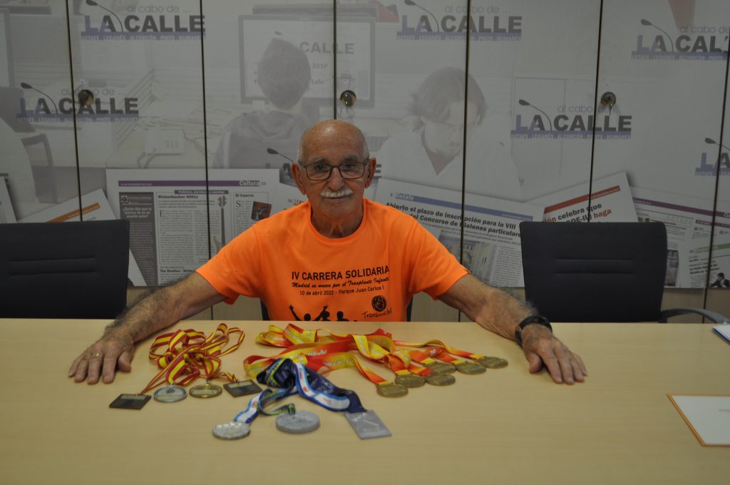 Aunque hace varios años ya fue protagonista de un reportaje en Al Cabo de la Calle por sus excelentes resultados, el experimentado deportista afincado en Getafe, ciudad en la que reside desde hace cinco décadas, remitió recientemente un correo electrónico al periódico quejándose por la poca relevancia informativa que se concedía a su lustrosa hoja de servicios. Y no le faltaba razón, así que le citamos en la redacción y acudió cargado con un arsenal de medallas, fotografías y documentos para avalar sus éxitos, especialmente los más recientes.