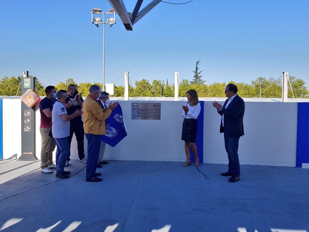 «En honor al aficionado más longevo del C.D. Leganés, Salustiano Toribio Montes, quien fue ejemplo de amor y cariño hacia su equipo hasta el último día de sus 106 años de vida», reza la placa que ha sido descubierta por el alcalde, Santiago Llorente, y la presidenta del Leganés, Victoria Pavón.