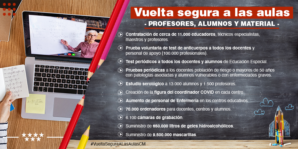 Estas medidas forman parte de la estrategia de inicio del curso escolar 2020/21, en la que la Comunidad de Madrid llevará a cabo «la mayor bajada de ratios» de su historia.
