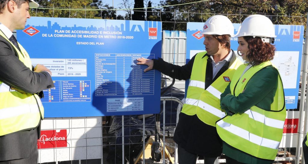 Díaz Ayuso ha realizado este anuncio tras visitar las obras para la instalación de cinco ascensores en la estación de Metro de Plaza Elíptica, en el marco del Plan de Accesibilidad e Inclusión del suburbano madrileño.