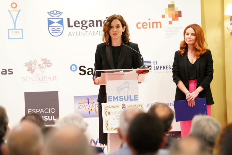 Entre los premiados estuvo la presidenta de la Comunidad de Madrid, Isabel Díaz Ayuso, que recibió el galardón Ciudad de Leganés y lo quiso compartir con toda “una comunidad que permaneció en pie en tiempos extraordinariamente duros y que hoy mantiene su pulso más vivo que nunca”. De hecho, según señaló el Ejecutivo autonómico en un comunicado, ejemplo de ello es que en lo que va de año “ya se hayan creado más de 16.500 empresas”.