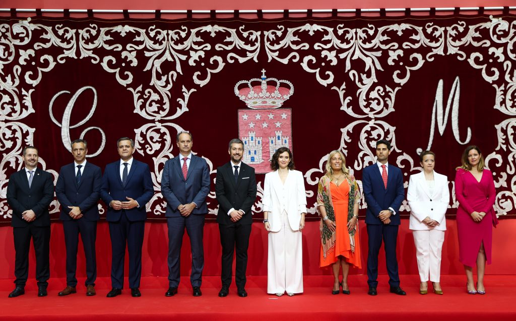 La presidenta de la Comunidad de Madrid ha presentado este lunes, a los consejeros del Gobierno regional con los que busca hacer «un mejor Madrid», después de que cada uno de ellos tomara posesión de su cargo, en un acto en la Real Casa de Correos, y a los que avisó que la tarea que les espera «no es para los que se arredran».
