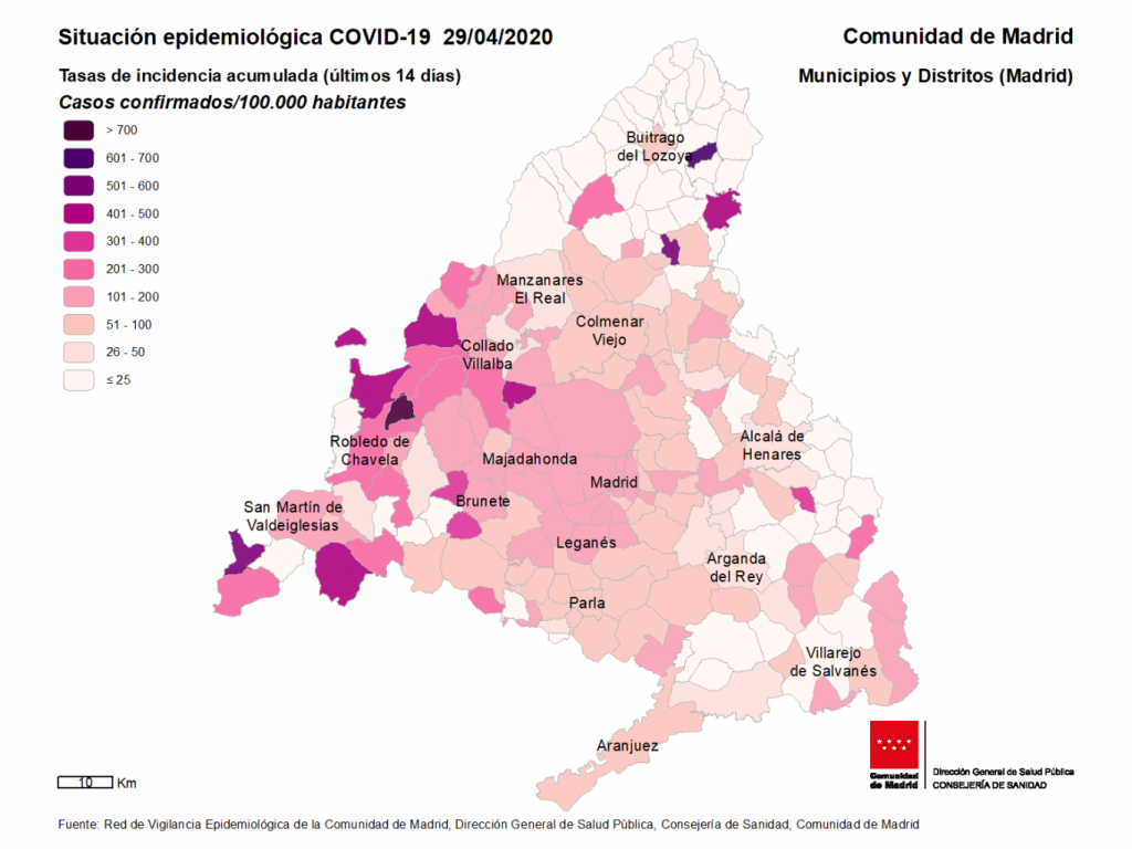 En el sur de Madrid, según datos oficiales, Leganés sigue siendo la ciudad con más contagios, con 2.811 casos confirmados. 209 en los últimos catorce días. Mientras que Móstoles sigue siendo la segunda ciudad del sur, con 1.893 casos.