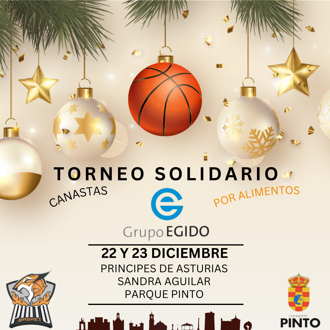Los pabellones Sandra Aguilar, Príncipes de Asturias y Parque Pinto serán escenario durante este viernes y sábado (22 y 23 de diciembre) del Torneo Solidario de Navidad Grupo Egido Pinto, evento que organiza Pintobasket con la colaboración del Ayuntamiento de Pinto y cuyo objetivo consiste en recoger alimentos en favor del Banco de Alimentos de Pinto.