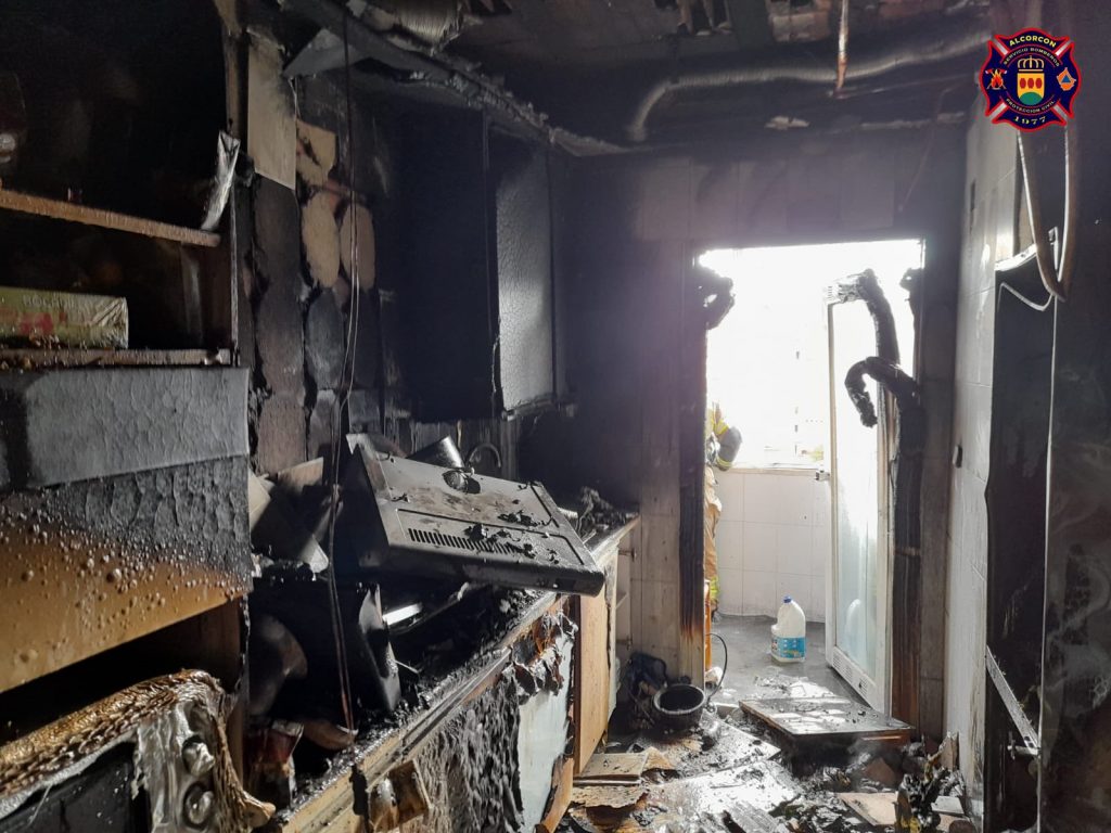 La rápida intervención de los Bomberos de Alcorcón han evitado la tragedia en una vivienda de la calle Inspector Juan Antonio Bueno, donde este miércoles ha empezado a arder la cocina del inmueble.