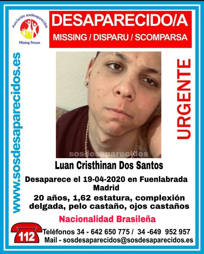 La Policía y la Guardia Civil buscan a un joven de 20 años, Luan Cristhinan Dos Santos, de nacionalidad brasileña desaparecido de Fuenlabrada desde el pasado día 19.
