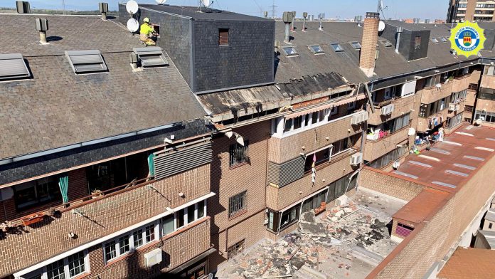 Eso sí, los Bomberos de Alcorcón han tenido que acordonar la zona hasta asegurad que no se desprendía ningún resto más del edificio.