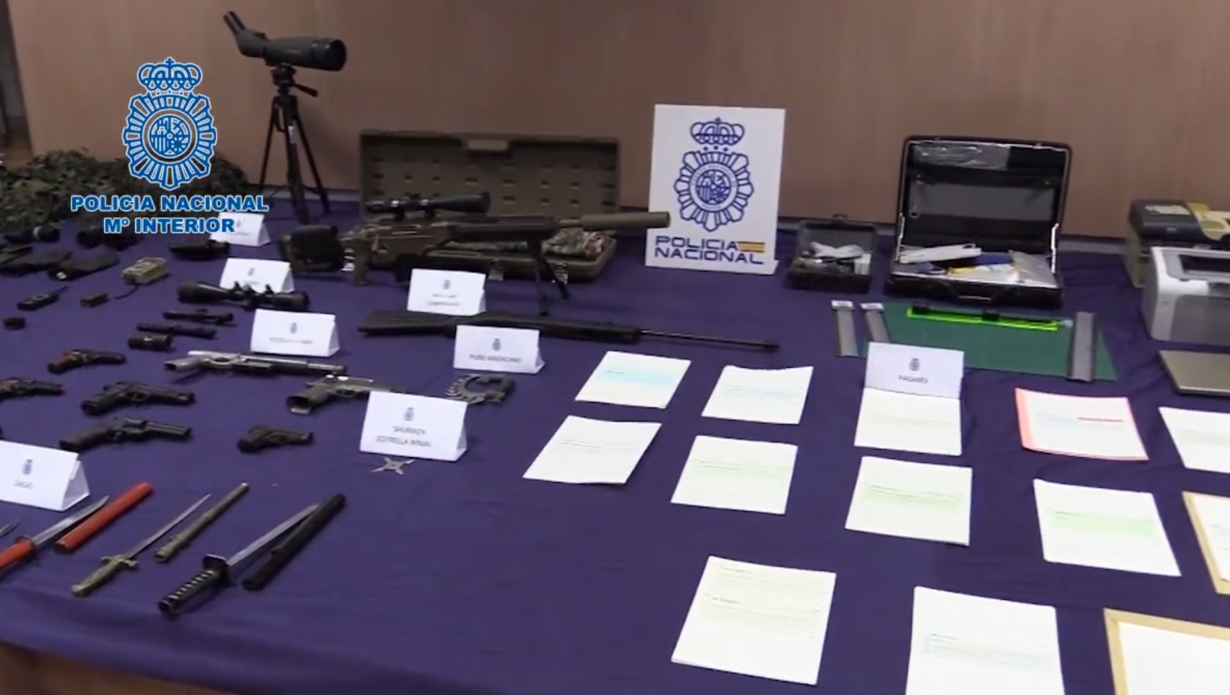La operación se ha saldado con la detención de ocho integrantes de la organización y la intervención de numerosos efectos y maquinaria empleada para la falsificación documental, armas simuladas de gas comprimido y diverso equipamiento táctico.