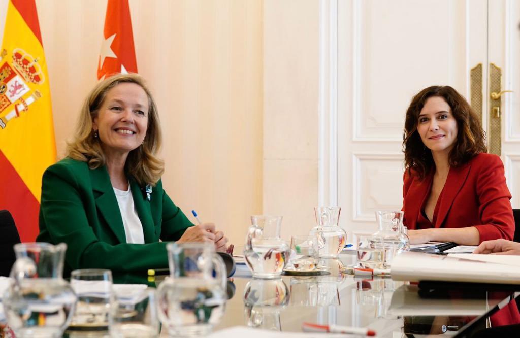 La vicepresidenta primera y ministra de Asuntos Económicos y Transformación Digital, Nadia Calviño, y la presidenta de la Comunidad de Madrid, Isabel Díaz Ayuso, han mantenido en la tarde de este miércoles una reunión “muy cordial” y “productiva”, donde Calviño ha puesto de manifiesto que los fondos europeos transferidos por el Gobierno central a la región se están ejecutando “a buen ritmo”.
