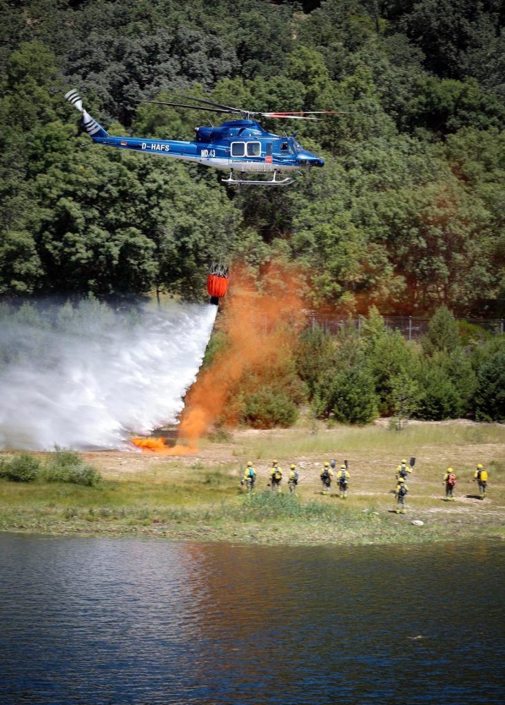 En medios aéreos se movilizan nueve helicópteros, cuatro de las brigadas helitransportadas con sede en Morata de Tajuña, Valdemorillo, Bustarviejo y Navas del Rey y otros cuatro bombarberos de las bases de Lozoyuela, Las Rozas, San Martín y Navacerrada. Por último, se cuenta con otro helicóptero de coordinación, observación y patrullaje en Las Rozas.