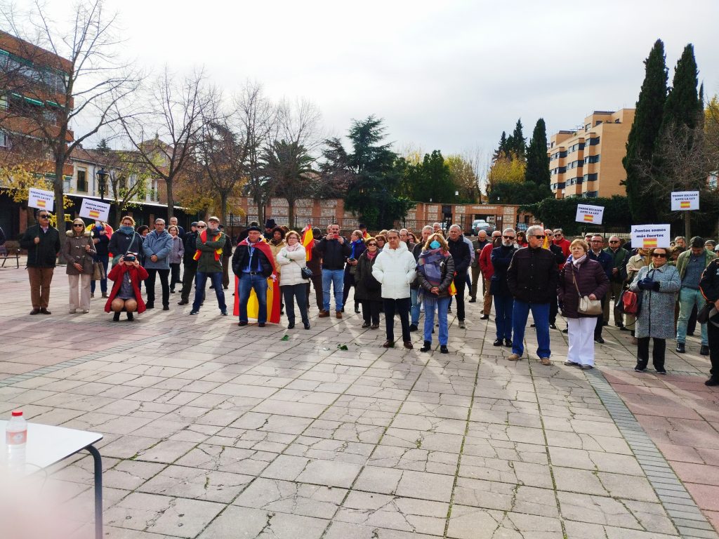 Convocados por la sociedad civil valdemoreña los vecinos se concentraron en el Parque del Duque de Ahumada, engalanado con banderas españolas, a las 12 del mediodía hora en que comenzó el acto al que se adhirieron a título personal el alcalde de la ciudad, David Conde, y varios ediles de la corporación.