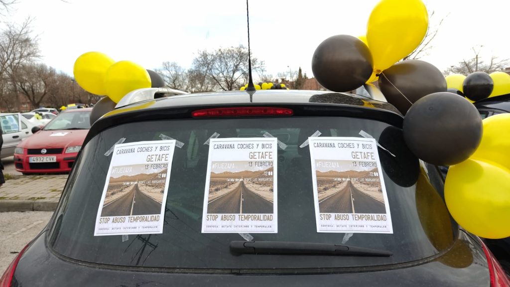 Los trabajadores interinos del Ayuntamiento de Getafe salieron este sábado a las calles de la ciudad, en coches y bicicletas, denunciando el abuso de la temporalidad y su situación laboral en fraude de ley en el Consistorio getafense.