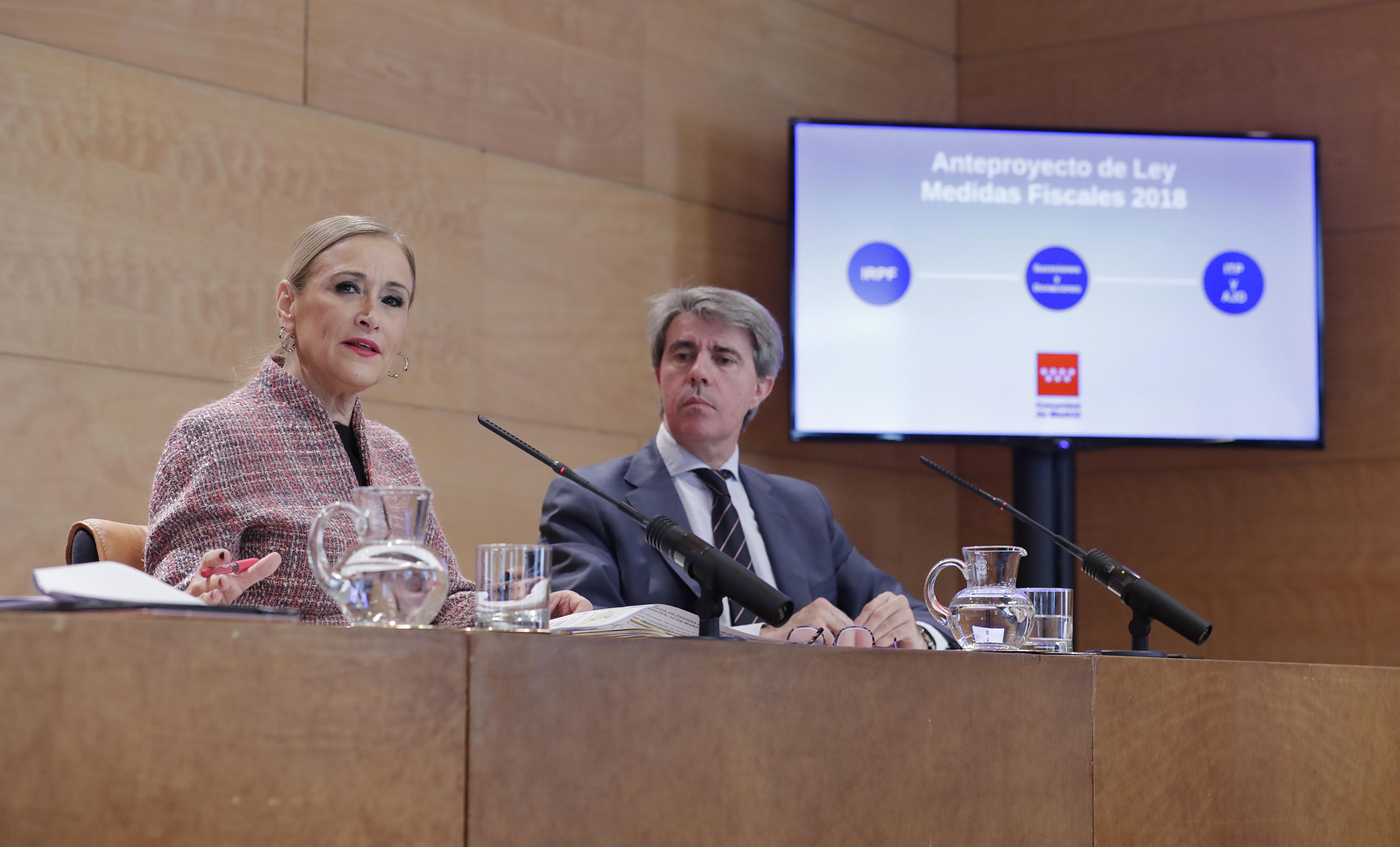 La presidenta de la Comunidad de Madrid, Cristina Cifuentes, ha anunciado una batería de rebajas fiscales para los madrileños, entre las que se encuentran reducir medio punto el tipo mínimo de la escala autonómica del IRPF, una bonificación en el Impuesto de Sucesiones y Donaciones que se lleve a cabo entre hermanos, tíos y sobrinos y nuevas deducciones. Estas medidas beneficiarán a los más de 3 millones de contribuyentes madrileños, que se ahorrarán 125 millones de euros al año.
