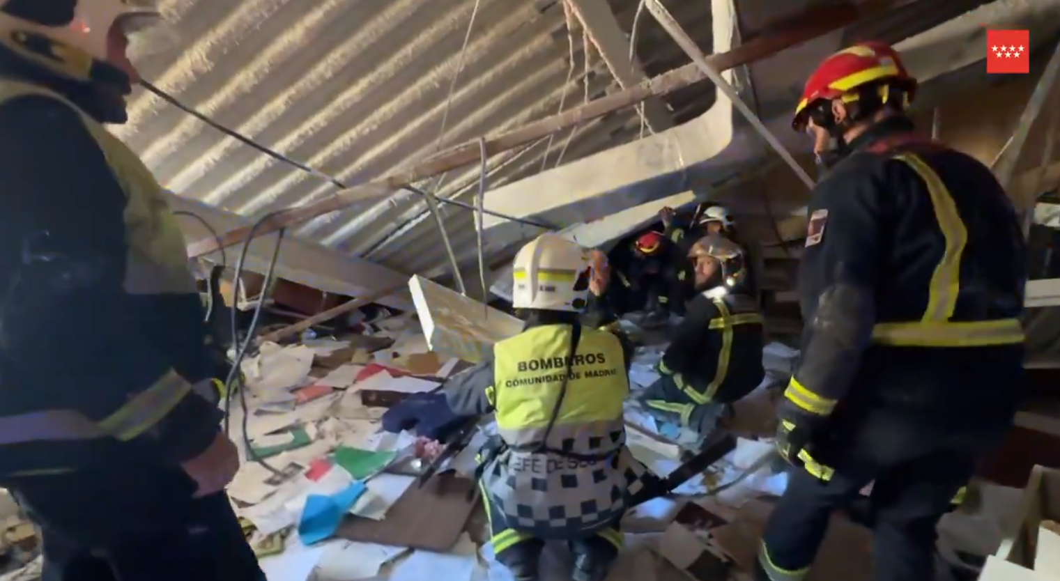 Hasta el lugar han acudido hasta cuatro dotaciones de los Bomberos de la Comunidad de Madrid, que han liberado a tres empleados que habían quedado atrapados entre el forjado. Así, lo aseguraron, abrieron huecos para poder socorrer a los atrapados por todo el peso inmobiliario de ese forjado.