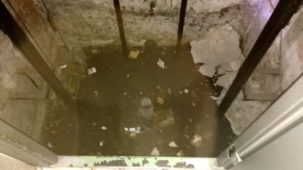 Los atrancos que se producen en la red de saneamiento están provocando repetidas inundaciones en una finca de la calle Velázquez en el barrio de La Alhóndiga de Getafe. Los vecinos tienen que soportar malos olores, humedades y existe la presencia de trozos de revestimiento caídos en el foso del ascensor junto al cableado eléctrico.