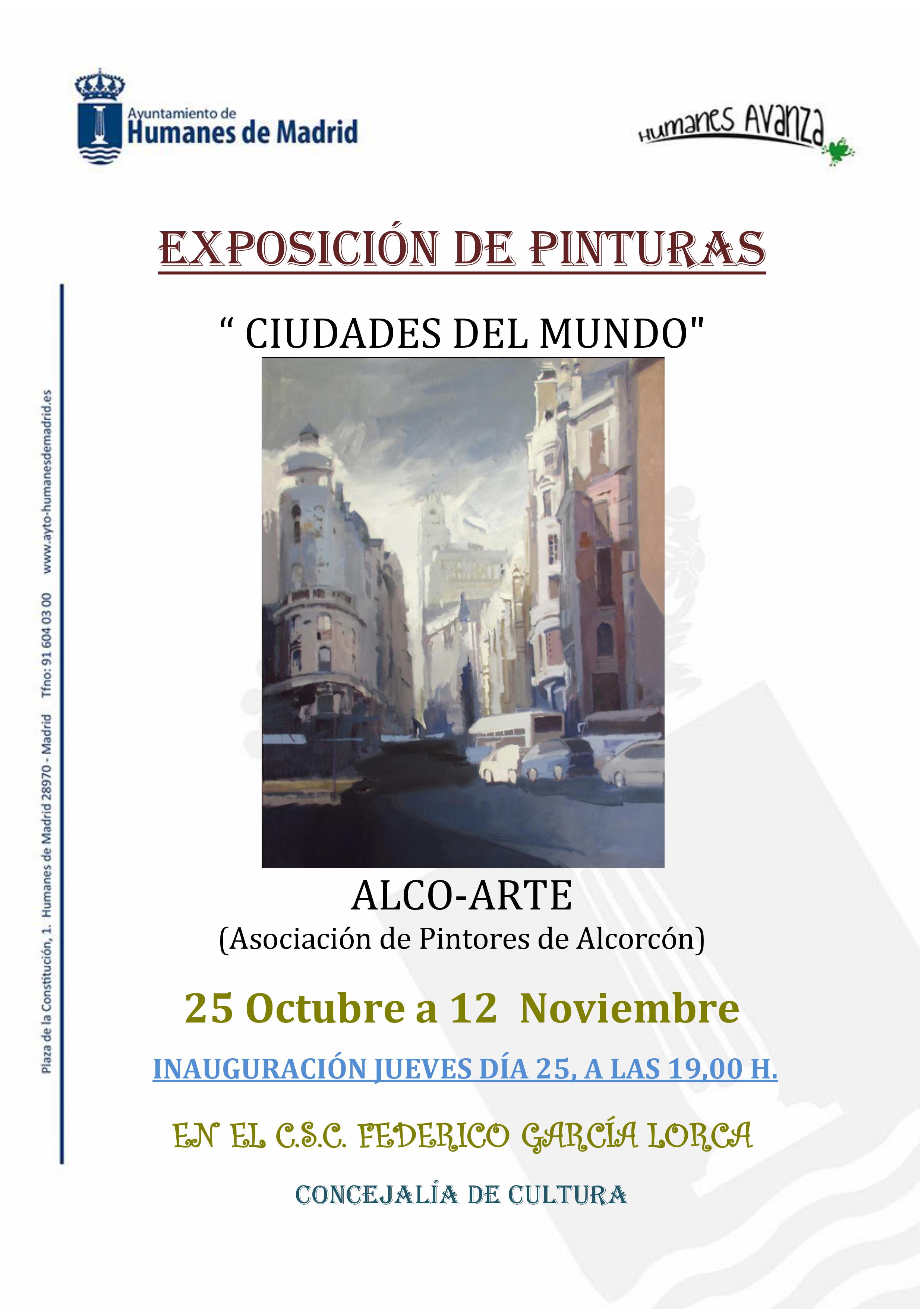 El centro socio cultura Federico García Lorca de Humanes acoge la exposición de pintura ‘Ciudades del Mundo’, a cargo de la Asociación de Pintores de Alcorcón ‘Alco-Arte’. Este colectivo, exclusivamente de mujeres, empezó en los talleres de pintura que se impartían en la Universidad Popular de Alcorcón. El amor a la pintura les unió y cada una eligió su estilo propio.