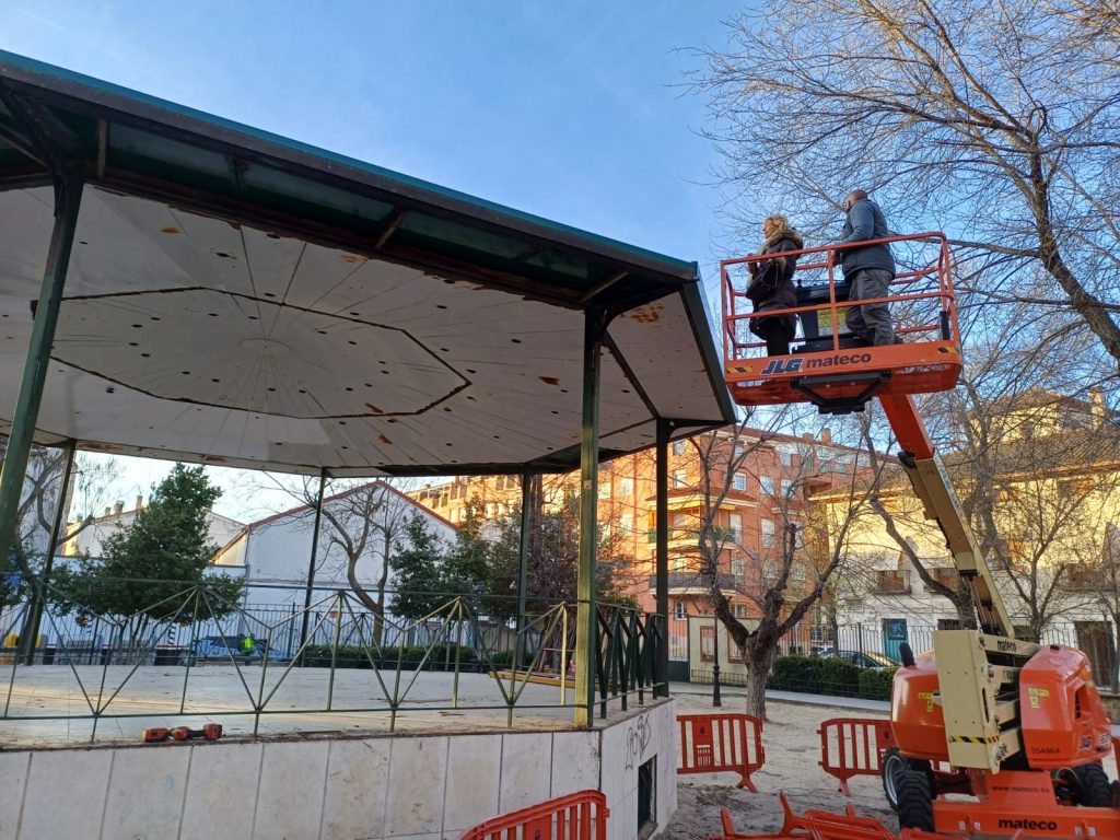 Los trabajos del templete, situado en el centro del parque, que han comenzado recientemente, tienen un plazo de ejecución de unas 12 semanas y cuentan con un presupuesto de 29.524 euros.