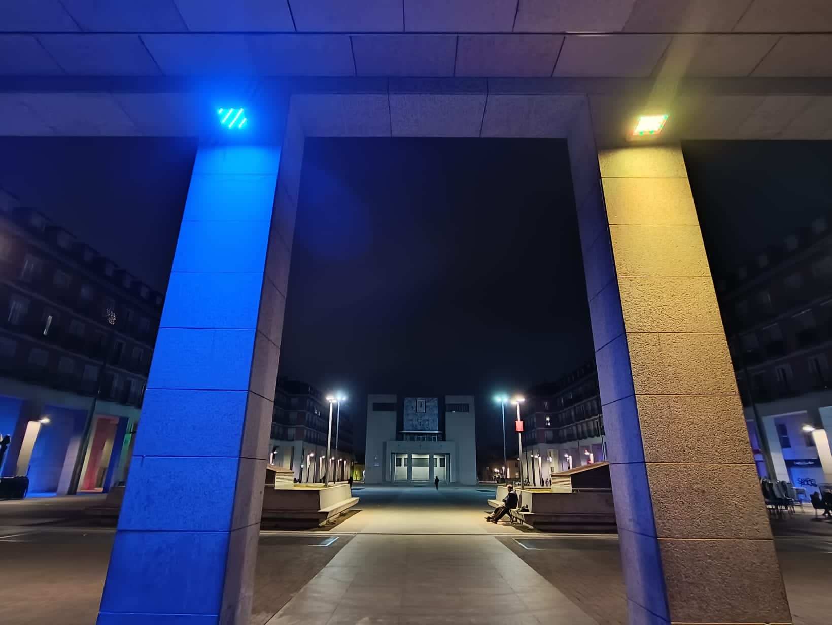 Desde hace una semana, coincidiendo con el inicio de la invasión, la plaza se ilumina por la noche con la bandera de Ucrania, en señal de solidaridad con este pueblo. Y para la concentración se insta a los vecinos a acudir con una vela.