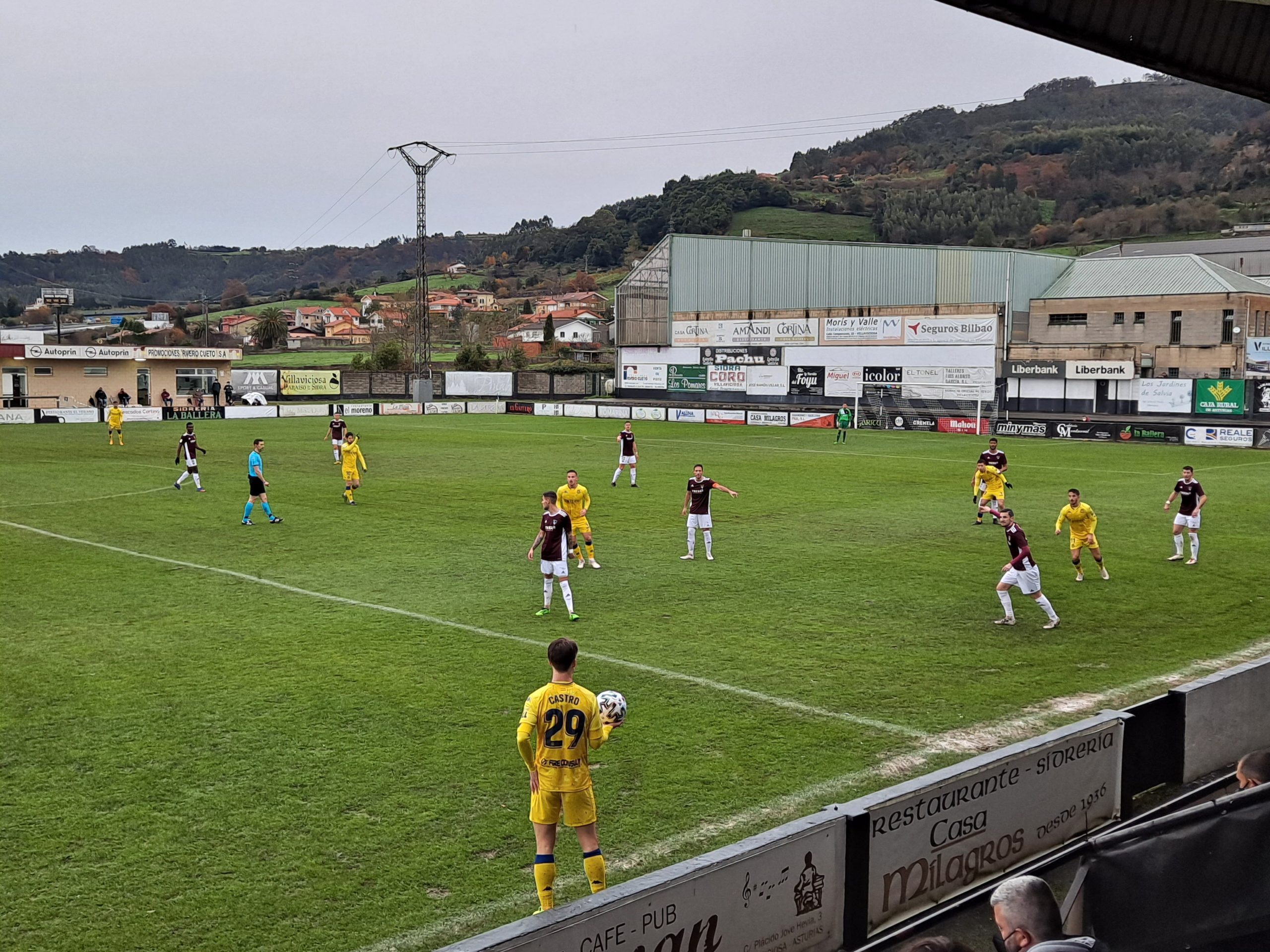Más trabajo ha tenido el guardameta local, Mateusz, que a la media hora de partido ha tenido que emplearse a fondo para desviar un peligroso remate de Escardó.