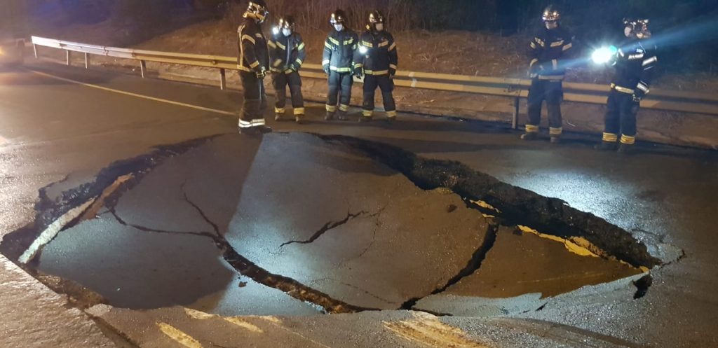 Al parecer, los Bomberos han recibido el aviso en la madrugada del martes al miércoles, 1 de julio. Y una vez personados han comprobado como la carretera se encontraba hundida en esta zona, a consecuencia de una avería en la red del Canal de Isabel II.