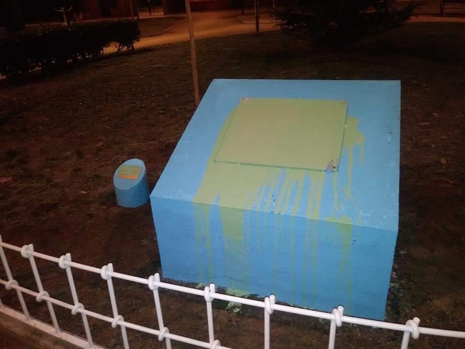 Según la portavoz del partido en Getafe, Mónica Cobo, «desde que se inauguró el 19 de enero de 2019 ha sido golpeada, arrancada o cubierta de pintura en numerosas ocasiones». Según Cobo, «aunque la alcaldesa ha asegurado en cada ocasión que el Ayuntamiento volverá a reponerla cuantas veces haga falta, creemos que se pueden desarrollar actuaciones para evitar que esto ocurra».